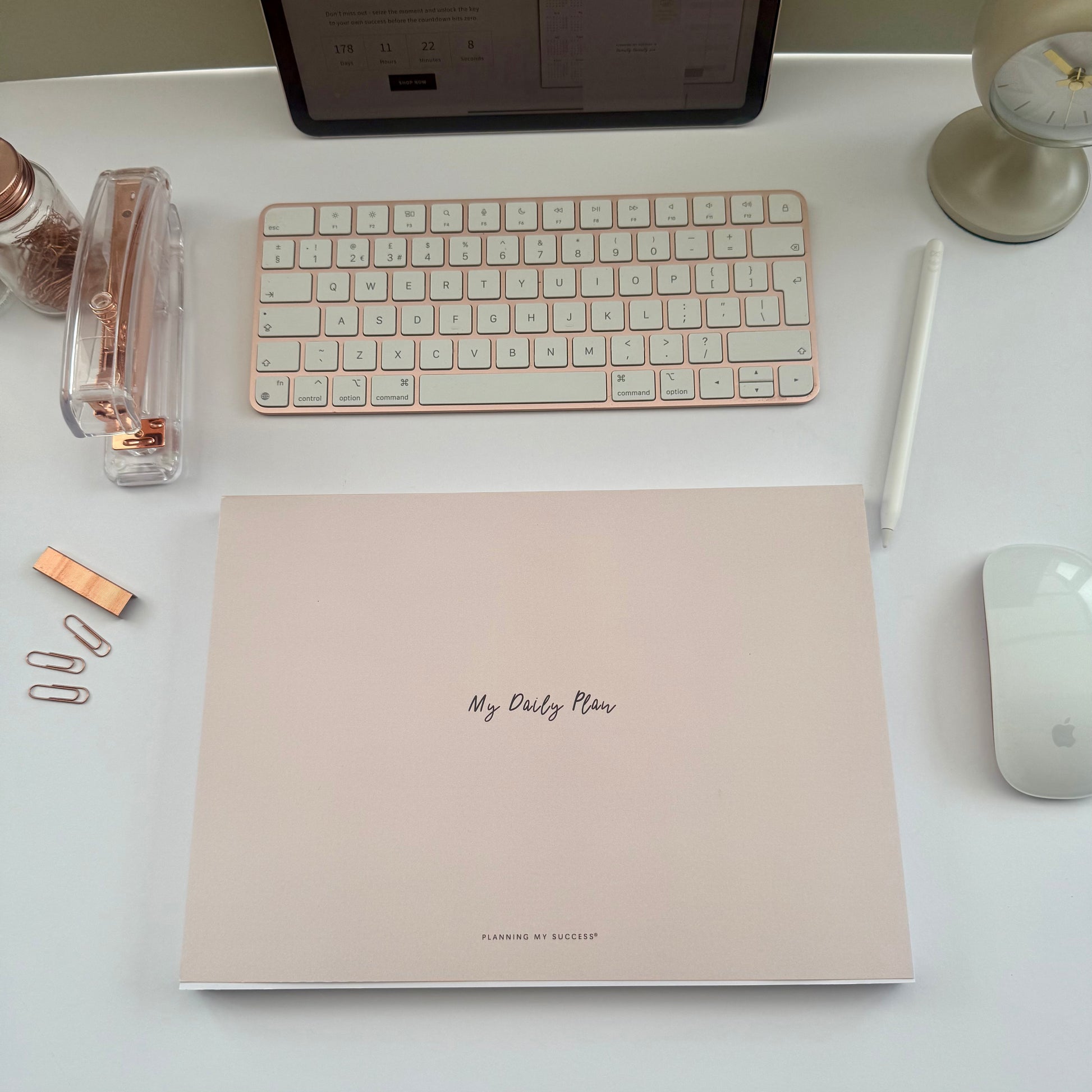 Manage your day efficiently with the My Daily Plan A4 Desk Pad. This desk pad includes focus mapping to set up your day with intention, schedule to time block your day to improve productivity, contact list to ensure you connect and maintain relationships, to do list to allocate time to tasks, tracker to monitor key results and notes section, all on one page.
